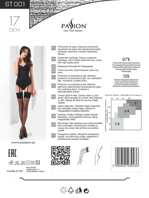 Чулки ST001 5 nero - Passion предназначены для ношения с любой одеждой, будь то платье или джинсы и топ. Их также можно сочетать с одним из наших комплектов сексуального нижнего белья для особенного вечера. Благодаря классическому дизайну эти чулки никогда не выйдут из моды, поэтому вы можете носить их раз за разом, не беспокоясь о том, что они будут старомодными или немодными.